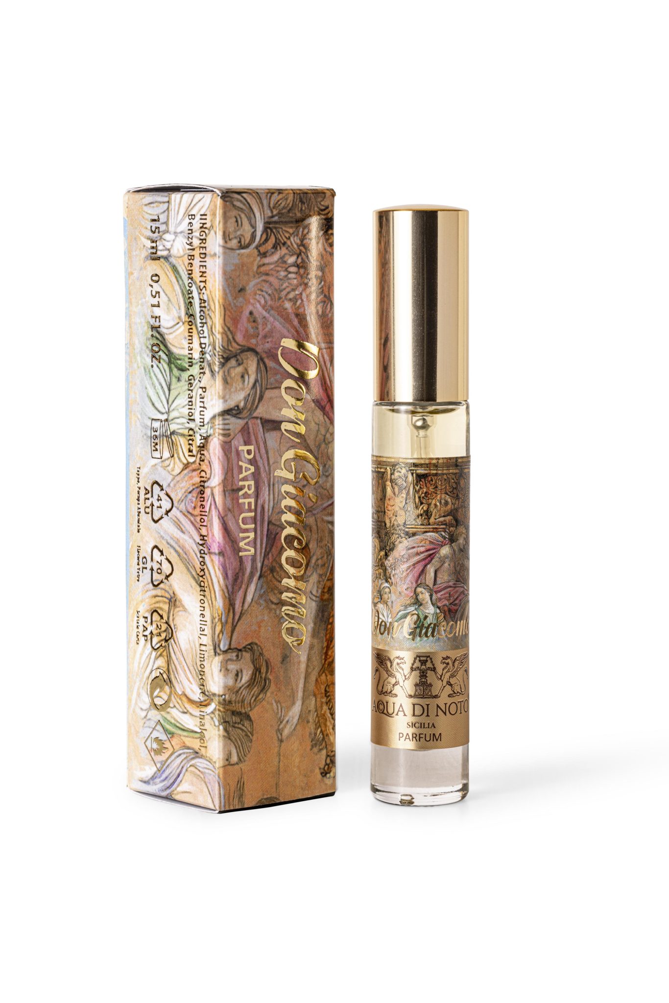 Una fragranza essenziale, ricercata e nobile che mira ad evocare l’aura suadente del fascino e dell’eleganza maschile senza tempo, incarnata da un nobile barone siciliano: Don Giacomo Nicolaci. Un viaggiatore, un alchimista carismatico e illuminato che ha lasciato il segno nella storia della città attraverso un linguaggio architettonico ed iconografico riportato sull’elegante boccetta e sulla scatola, divenuto un marchio d’identità, che ne rievoca lo stile, la personalità e il ricordo di sé che ha lasciato al mondo.
