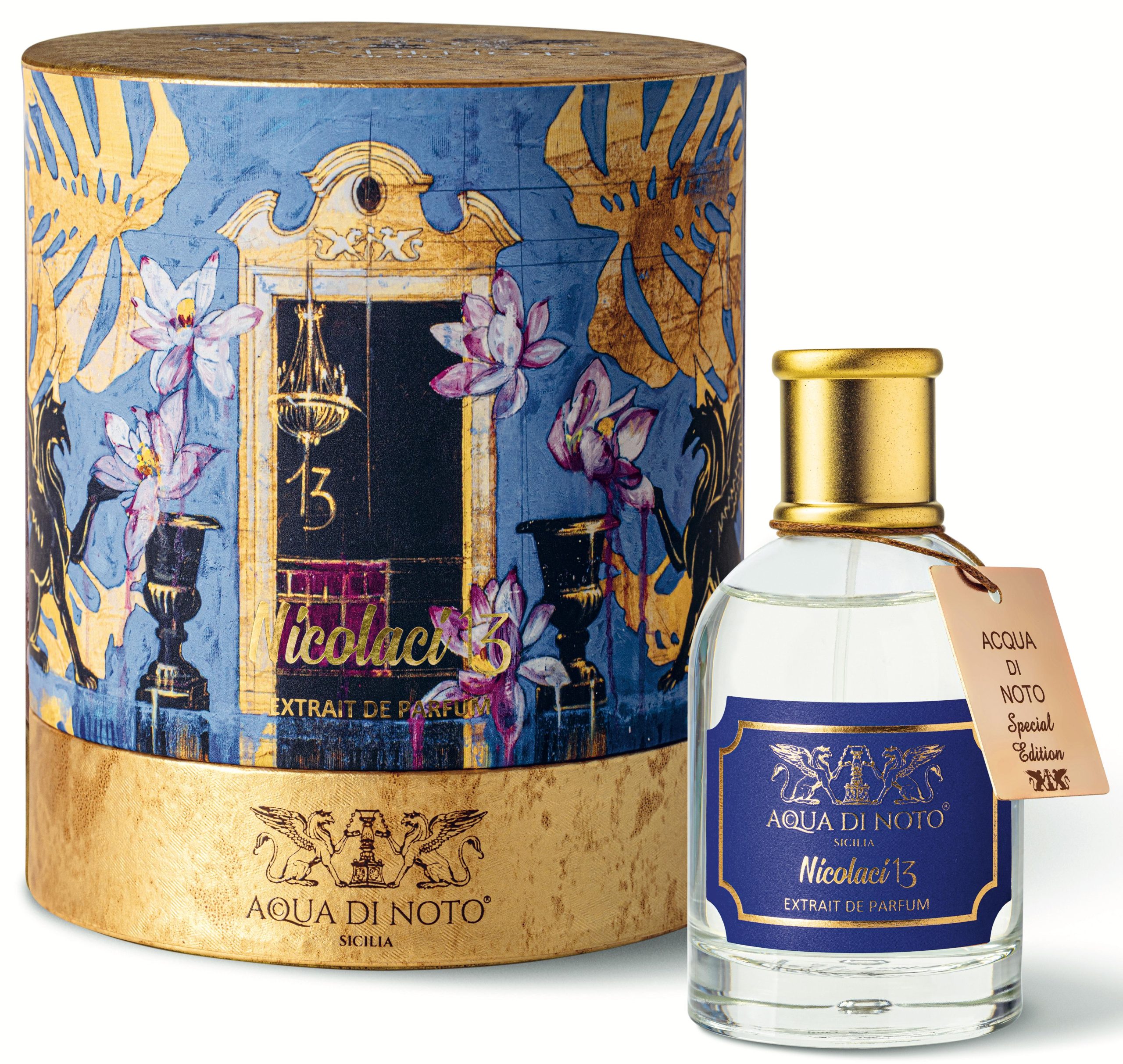 Nicolaci 13 è un Extrait de Parfum dedicato alla scenografica via Nicolaci, tra le vie più belle al mondo per gli esuberanti balconi barocchi dell’omonimo palazzo nobiliare dei Principi Nicolaci di Villadorata, Patrimonio Unesco, e luogo dell’anima del brand Acqua di Noto, sito al civico 13.
